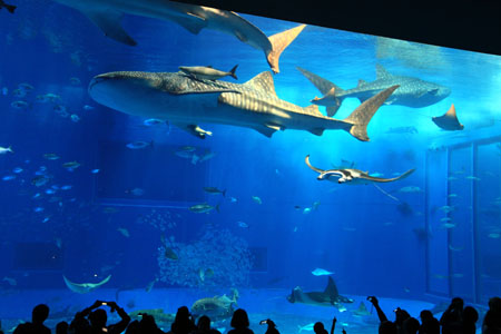 ![]() *沖縄美ら海水族館で飼育されているジンベイザメ *屋外にあるオキちゃん劇場でイルカショー |