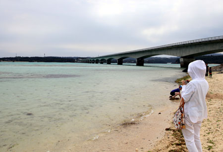 ![]() *海中道路の横でパラセーリングをしている人を見かけました。 *海中道路は島と島を結ぶ道です。(沖縄の道路は広くて良く整備された走りやすい道です。) |