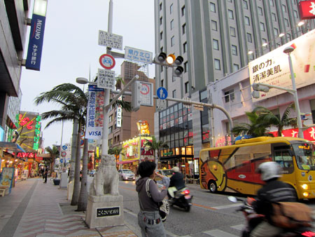 ![]() *那覇市内のメインストリートにて *国際通りは観光の中心街です。 |