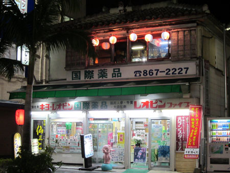 ![]() *ソーキそば(めんはもちっとし、スープはダシが効いていて美味しいー!) *帰り際に通りかかった薬屋さん、2階は居酒屋のようでした。 |