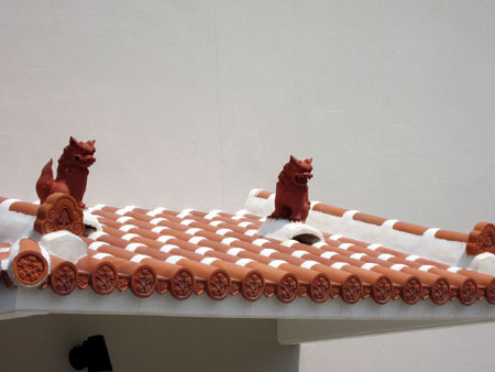 ![]() *道の駅で宮古の黒砂糖を買いました。(沖縄は物価が安いようです。) *屋根の上のシーサー(瓦は風で飛ばされないようにしっかりと固めています。) |