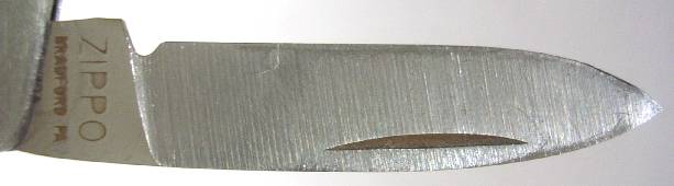 付け根部分に「ZIPPO USA」の刻印が入った。ナイフ側の刻印とは異なる。 |