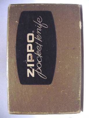 下箱:金色の下箱に黒色の台紙。上段に「ZIPPO pocket knife」、