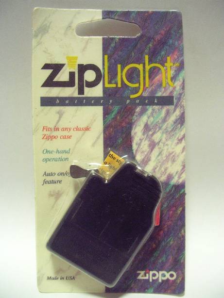 ロゴが「Zippo」から「ZipLight」へ変更。光線を表わす図案も水平線が上方へ伸びる形へ変更。下段には連絡先電話番号が追加。 |